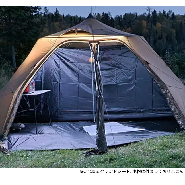 Circle 6 は、冬キャンプのために設計された大型テントです。インナーテント使用時は3人用の広々とした空間があります。