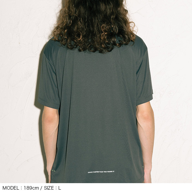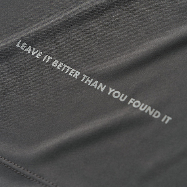 肩にブランドネーム、背面裾にはブランドスローガンである「LEAVE IT BETTER THAN YOU FOUND IT」がリフレクタープリントされています。
