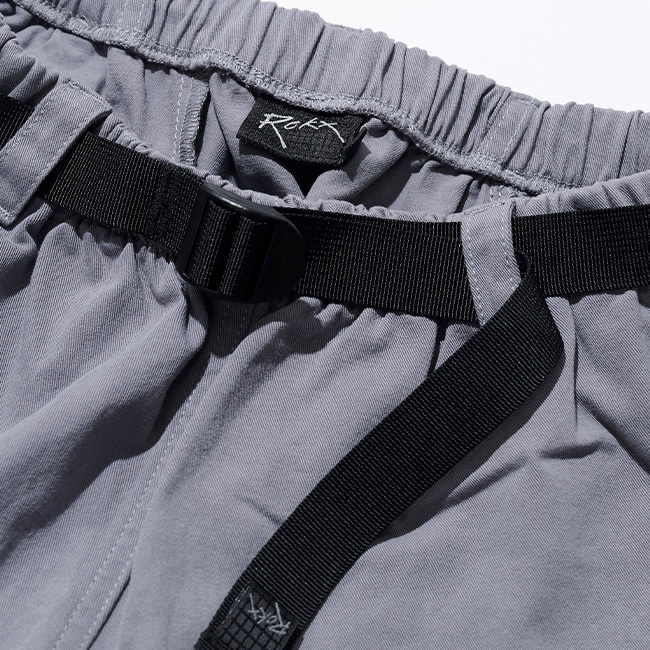 新たに立ち上がった【ROKX CLASSICS】シリーズの代表的パンツとなります。ウェビングベルトを表に出したデザイン、独特のヒップ部分のパネルデザイン、極太なシルエットなど、ほかにないディティールが目を引くパンツ。