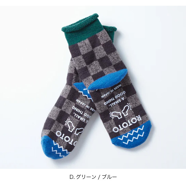 ロトト パイルルームソックス[チェッカーボード] ROTOTO PILE ROOM SOCKS ”CHECKERBOAD” ユニセックス メンズ レディース R1497 靴下 くつ下 おしゃれ キャンプ アウトドア