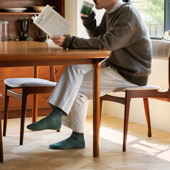 通常パイル編みすることが困難な和紙の糸を、特殊な編み機と卓越した職人の技術によって特別な一足に仕上げました。