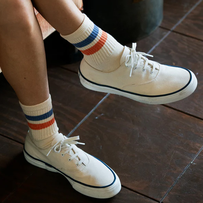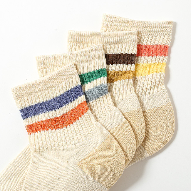 オーガニックコットンをベースに使用したレトロスタイルのアスレチックソックス。