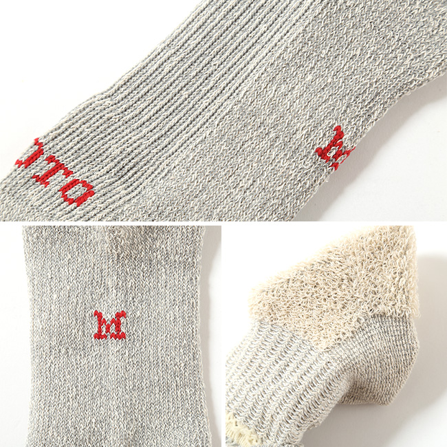 足底はパイル編み仕様で、オーガニックコットンが汗を吸収し、ヘンプが発散してくれるイメージで編み立てています。