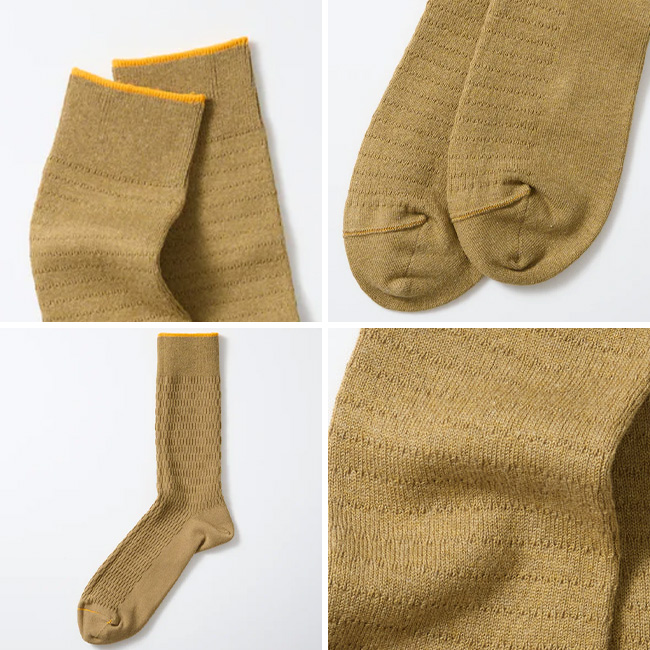 フォーマルソックスを得意とする国内工場で編み立てられ、つま先は編み目をつなぎ合わせる「リンキング」仕上げにより、肌あたりのやさしい履き心地を実現しています。