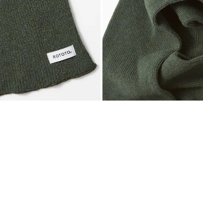 発色がよく、弾力のあるオーストラリア産メリノ種のラムウールを使用し、度詰めに編んだボリュームのある生地感で、首元をしっかりと温めてくれます。