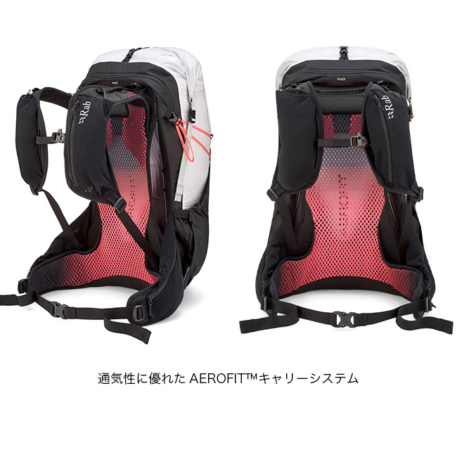 背面には通気性に優れたAEROFIT™キャリーシステムを採用。