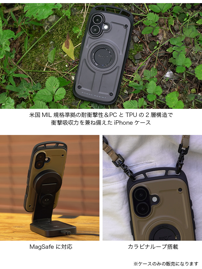 ルートコー グラビティショックレジストケース Pro(iPhone16専用) ROOT CO. iPhoneケース 携帯ケース スマートフォンケース スマホケース キャンプ アウトドア フェス
