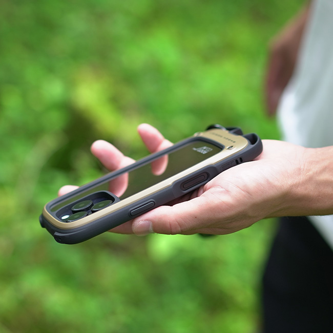 機能・耐衝撃・デザインの3点を兼ね備え、アウトドアテイストを取り入れたデザイン。
