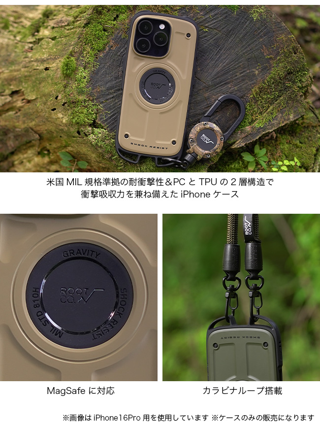 ルートコー グラビティショックレジストケース ラギット(iPhone16ProMax専用) ROOT CO. iPhoneケース 携帯ケース スマートフォンケース スマホケース キャンプ アウトドア フェス