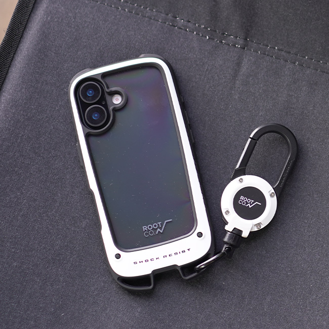 米国環境耐性試験「MIL-STD-810H 516.6Procedure Ⅳ」の耐衝撃試験に準拠した耐衝撃性能はもちろん、下部に搭載されたカラビナループにはカラビナなどを直接ケースに取り付ける事ができるので、バックパックやショルダーバッグ・ベルトループ等にiPhoneをそのまま装着、登山やアウトドア時の落下防止が可能です。デザインは、軽量&スリムさを実現した背面クリアのバンパータイプ。