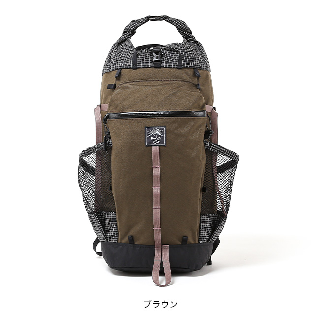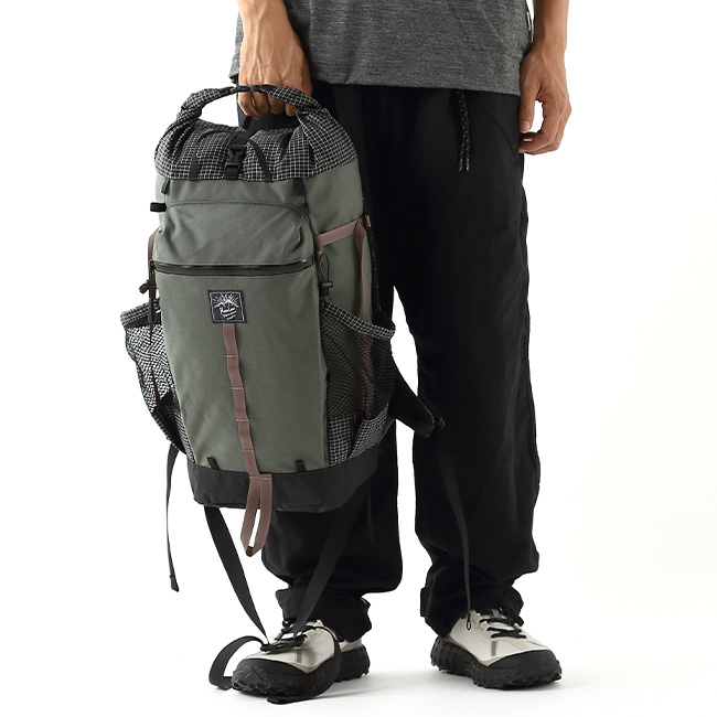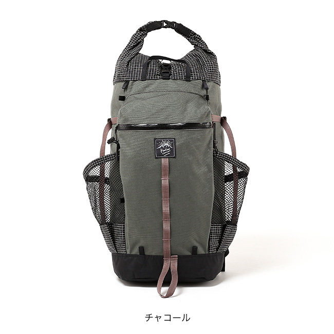 Back to Basicというコンセプトでギミック等は一切なしですが そのぶん徹底的にサイズ感と使い勝手、そして背負い心地に拘りました。メインの素材は強靭ながら軽量の撥水加工済みの1000Dナイロンを使用(ポリエステル15%混紡) ハイク時でのハードなアクティビティに最適化したのはもちろんですが、 それプラスあまりスポーティー過ぎずオールドスクールなデザインのマウンテンギアを目指しました。