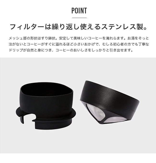 お湯をそっと注がないとコーヒーがすぐに溢れるほど小さいおかげで、むしろ初心者の方でも丁寧なドリップが自然と身につき、コーヒーのおいしさをしっかりと引き出せます。