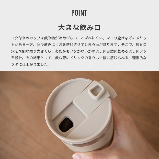 ■飲み口穴を可能な限り大きくし、飲み物の香りをしっかりと楽しめる。
