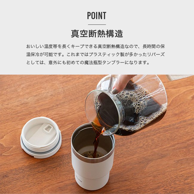 これまではプラスティック製が多かったリバーズとしては、意外にも初めての魔法瓶型タンブラーになります。