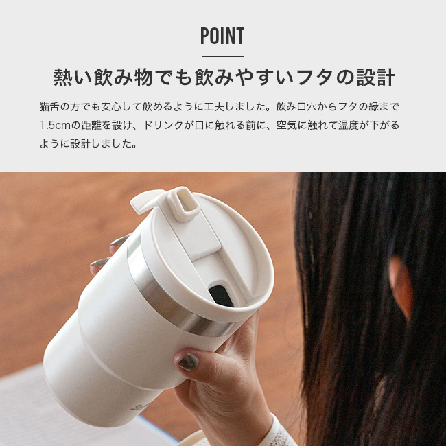 ■熱い飲み物でも飲みやすい、絶妙なフタの設計猫舌の方でも安心して飲めるように工夫しました。