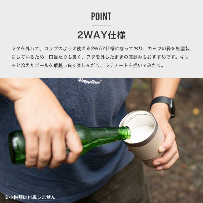 ■フタを外して、コップのように使える2WAY仕様カップの縁を無塗装にしているため、口当たりも良く、フタを外したままの直飲みもおすすめです。
