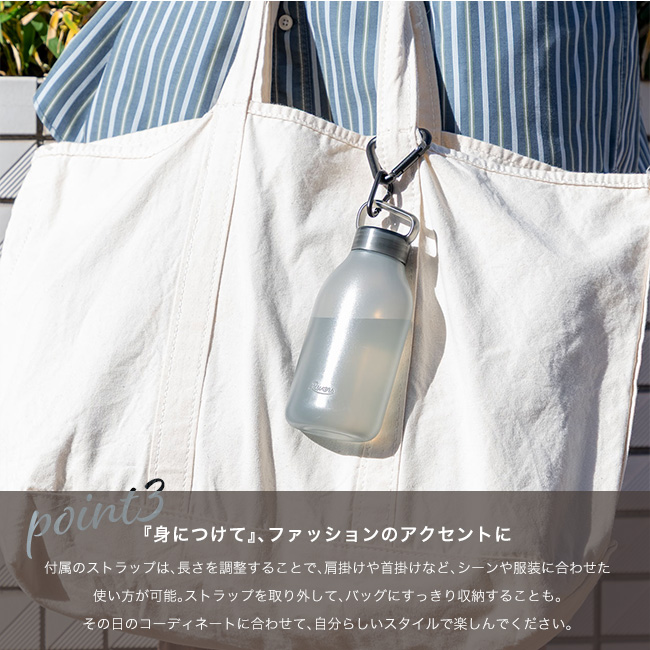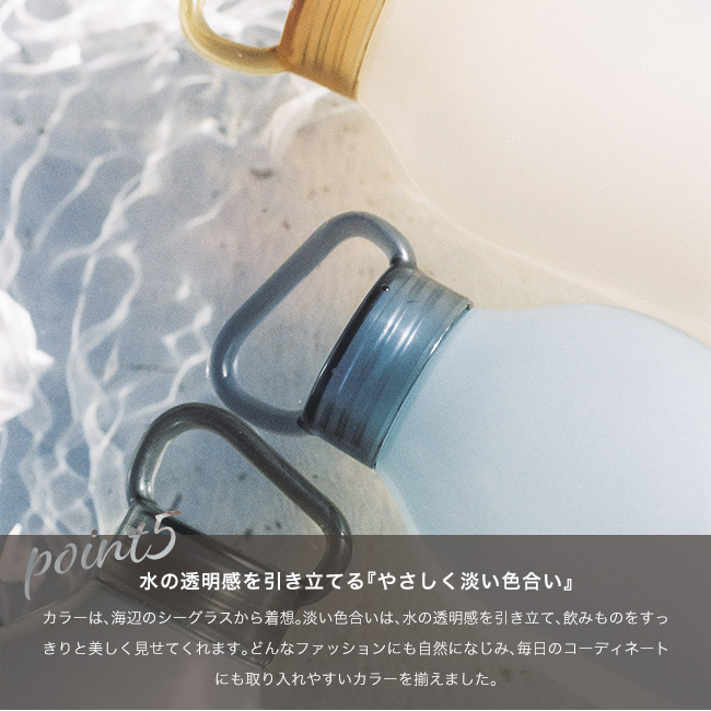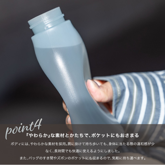 満水にしても重さを感じにくく、散歩や買い物など、普段の外出にも気軽に持ち歩けます。