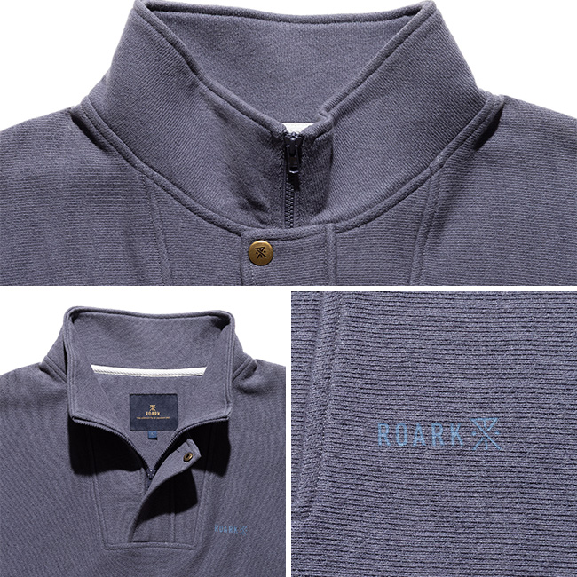 ジップを襟部まで上げてハイネックとして着用したり、ジップを下げれば襟付きのスウェットとしても着用可能な2WAYデザインです。■ブランド名:ROARK REVIVAL