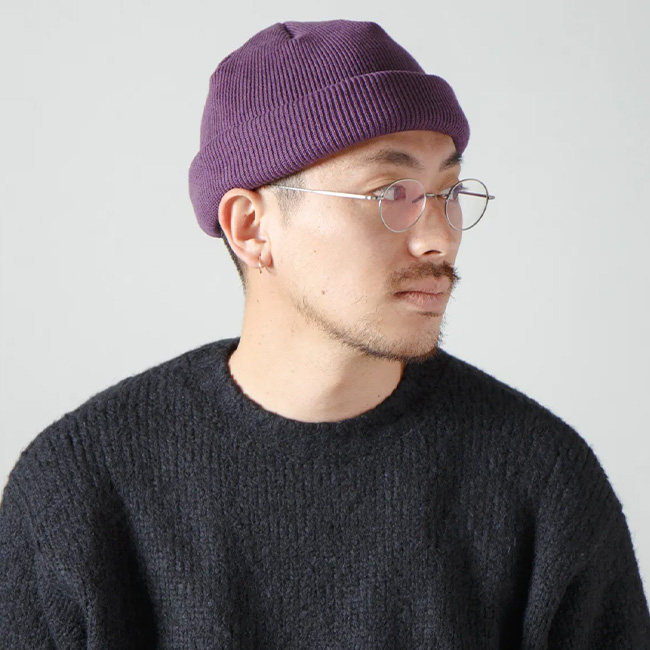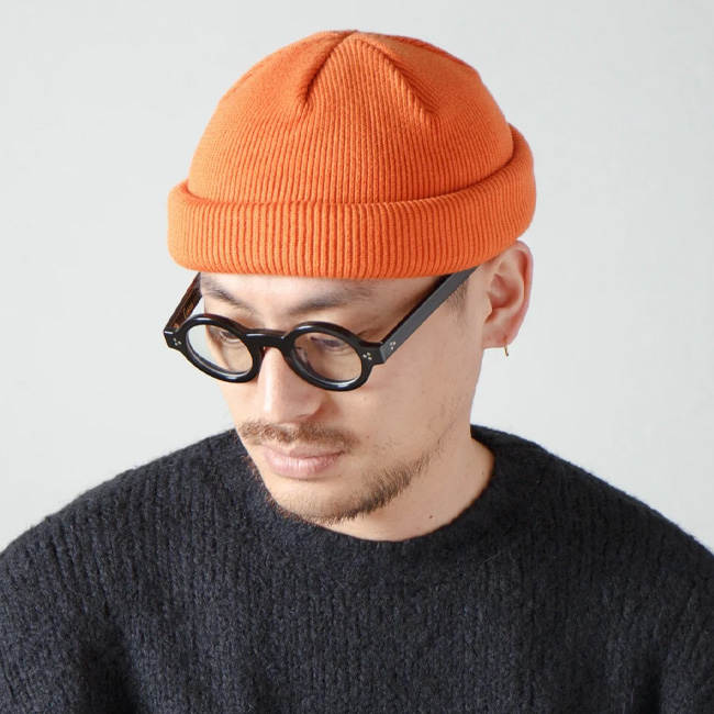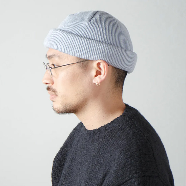 ミニマルなフォルムでありながら存在感があり、モードからストリートまで様々なスタイリングにフィットします。帽子の折り返し部分は、手まつり縫いで折りキワを止めておりますが、ご自身で糸を外して頂くと自在にアレンジできますのでお好みに合わせて調整下さい。