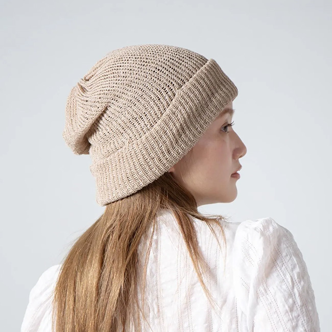 透け感とルーズな仕上がりが特徴のシアーメッシュニットキャップ