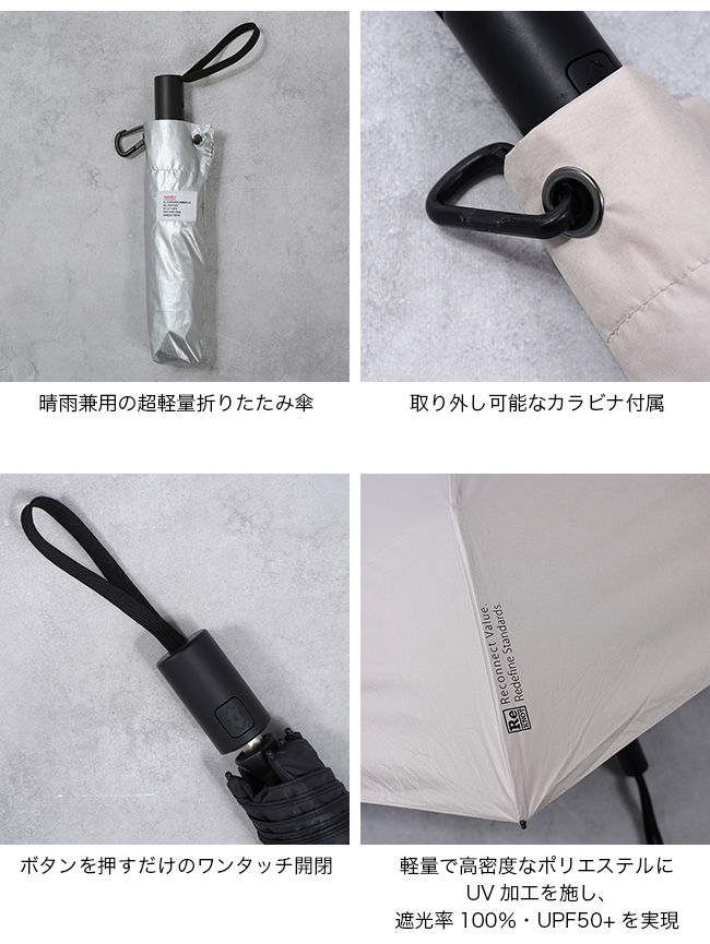 リノット U/Lサンブロックアンブレラ オートマティック ReKNOT U/L SUNBLOCK UMBRELLA-AUTOMATIC- RKN-26002 晴雨兼用 日傘 雨傘 折り畳み傘 遮光 超軽量 コンパクト ワンアクション UVカット UPF50+ おしゃれ キャンプ アウトドア