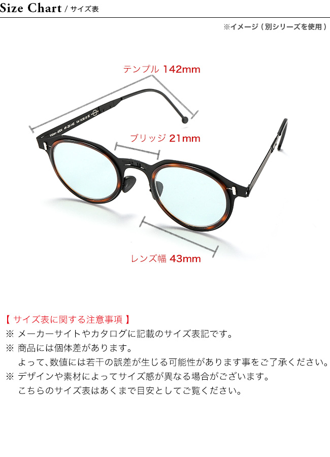 ■サイズ:レンズ幅43mm、ブリッジ幅21mm、テンプル142mm