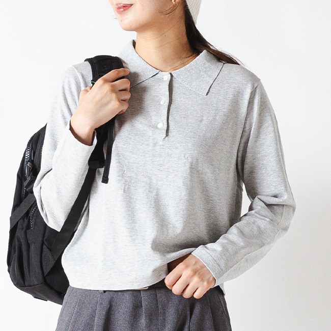 コットン100%の柔らかい肌触りがたまらない、ロングスリーブタイプのニットポロ。