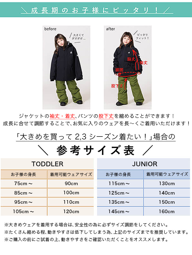 普段着&スノーウエアで2wayタイプな所がおススメポイントです。RESEEDAではお子様の安全に考慮し、JIS規格に対応して作られています。