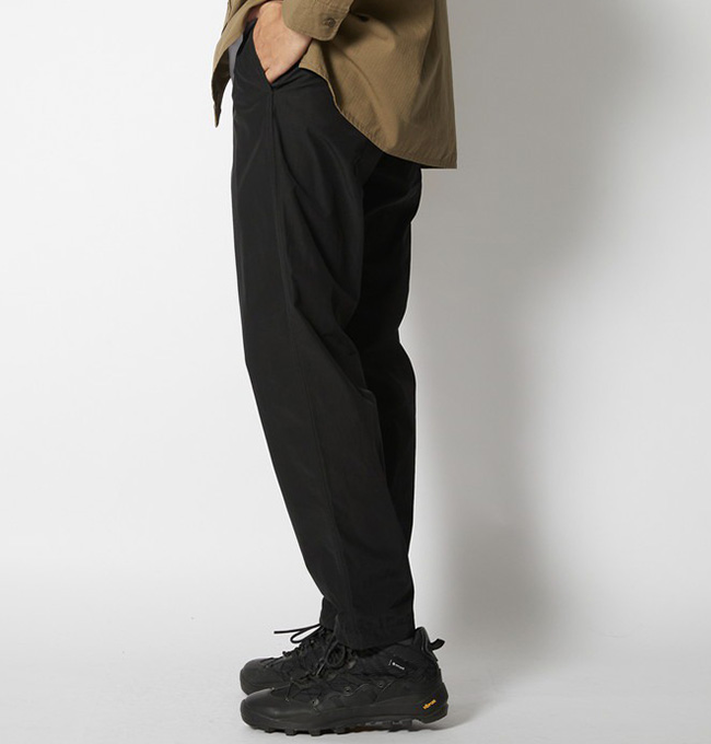 負荷の掛かるヒップ部分の生地を二重仕様にするなど、シンプルで飽きのこないデザイン・サイズ感を踏まえつつこだわりが覗くロングパンツです。