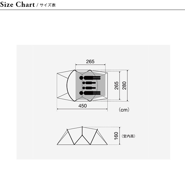 〔テント〕テント本体/75Dポリエステルタフタ・PUコーティング耐水圧1,800mmミニマム・撥水加工・UVカット加工、 インナーウォール/68Dポリエステルタフタ、ボトム/210Dポリエステルオックス・PUコーティング耐水圧1,800mmミニマム、 フレーム/A6061(Φ13mm)