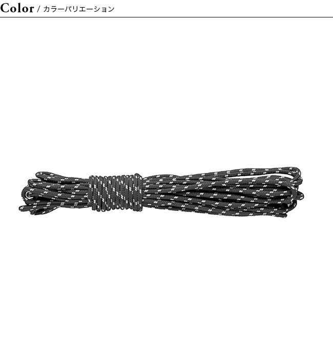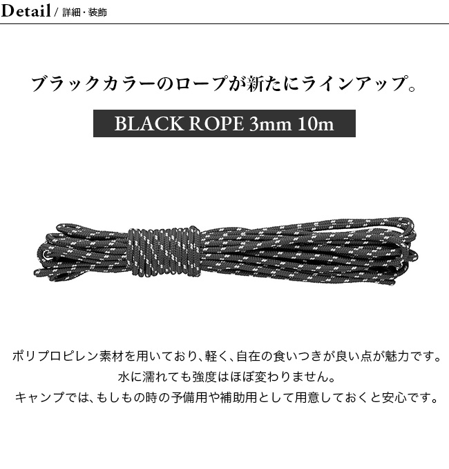 Pro. air シリーズなどの幕体にも使用している、テントなどに最適な直径3mmのブラックカラーのロープ。