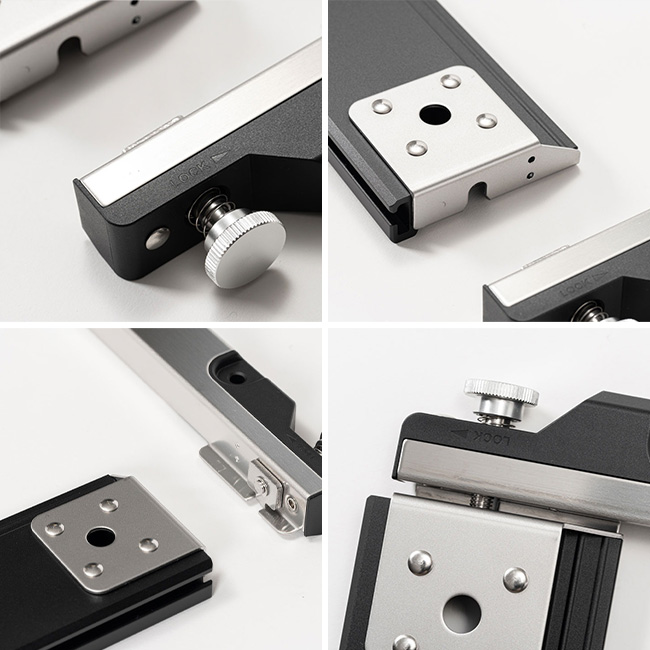独自の機構によって、工具やパーツを使うことなく、簡単に長辺と短辺の分解・結合が可能です。