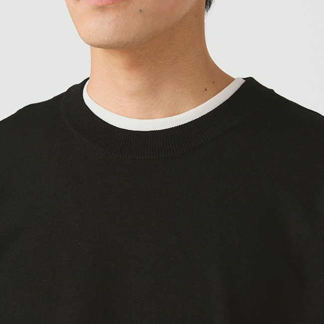 しっかりと目の詰まった衿のリブ編みは、繰り返しの洗濯にも耐え、型崩れしにくいのがポイント。