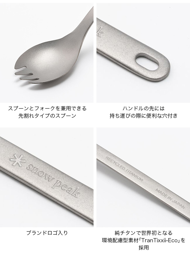 スノーピーク リサイクルチタン先割れスプーンロング snow peak SCT-014RE カトラリー 小物 スプーン フォーク チタン 軽量 おしゃれ キャンプ アウトドア