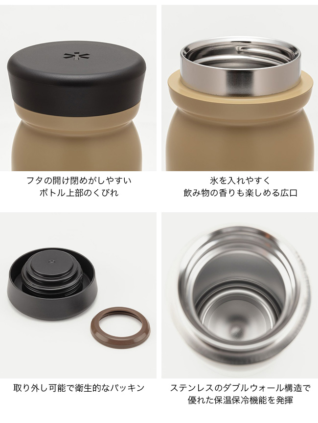 ステンレスのダブルウォール構造で、内部を真空にすることで外気の影響を遮断し、優れた保温保冷機能を発揮。