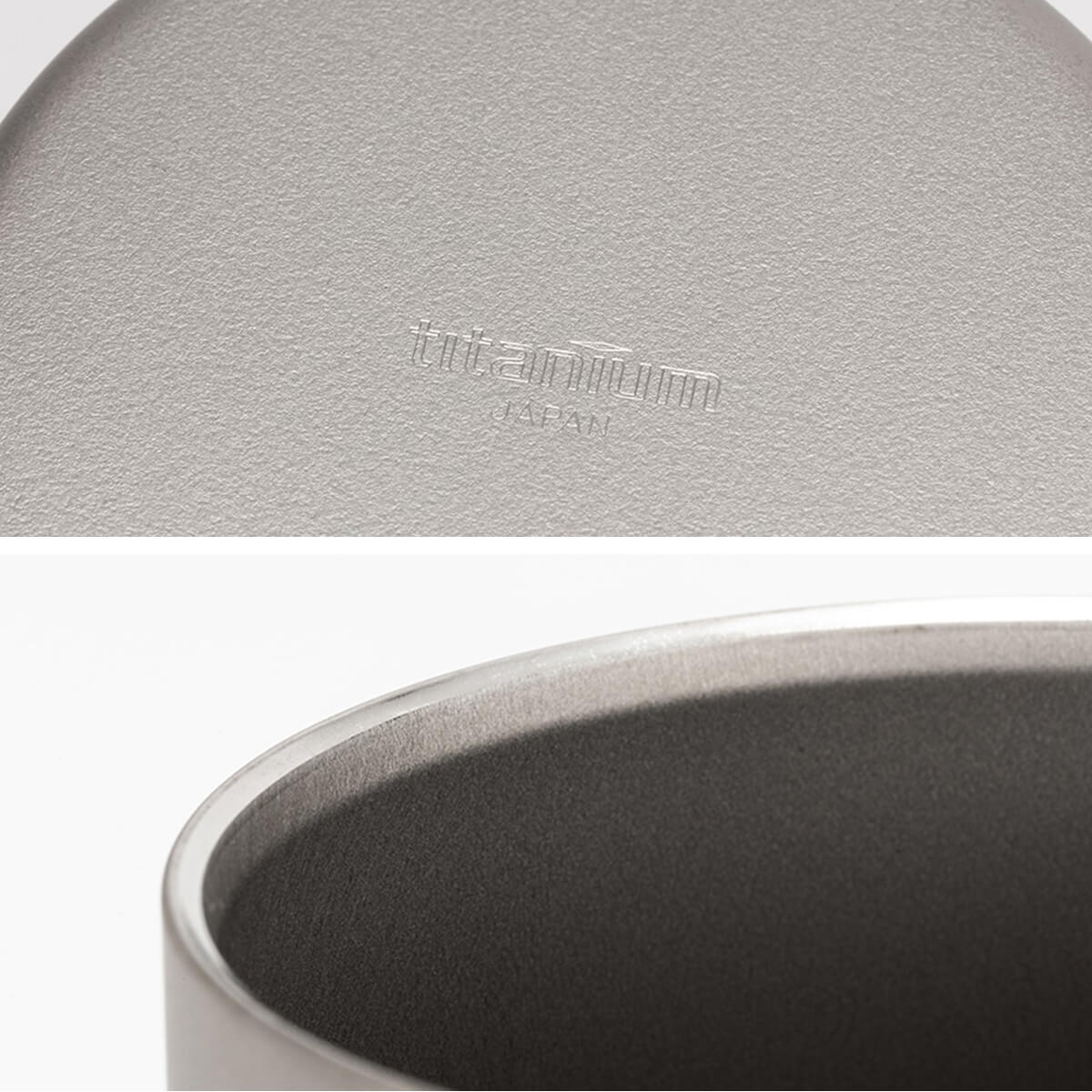 ダブルウォールのカップの淵は二枚のチタンウォールを溶接処理しており、シングルウォールと比べると厚みがあり、心地よいフィット感です。