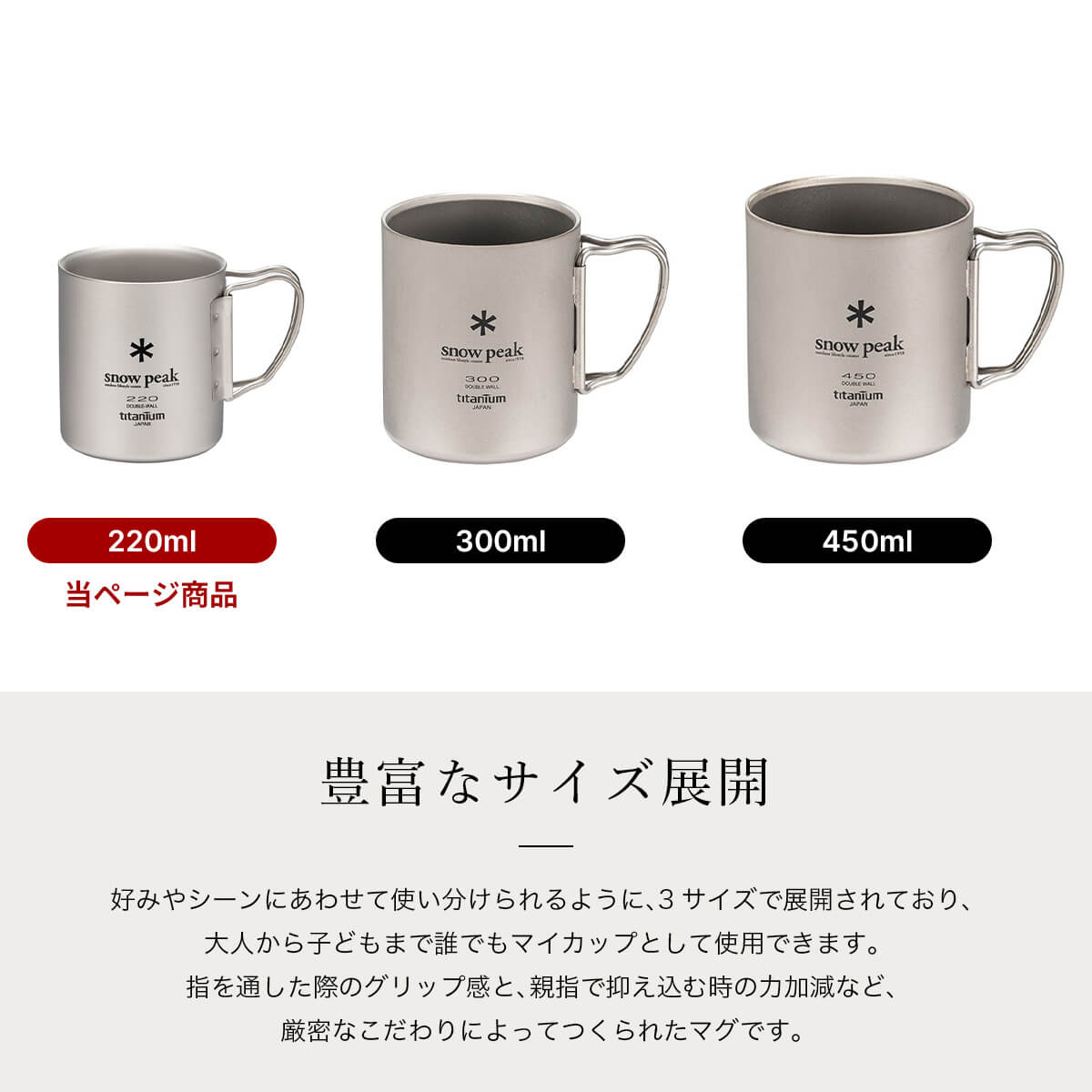スノーピーク チタン ダブルマグ 220 フォールディングハンドル snow peak Titanium Double Mag Cap 220 Folding MG-051FHR カップ マグカップ コーヒーカップ チタン 保温 保冷 ダブルウォール コップ おしゃれ キャンプ アウトドア