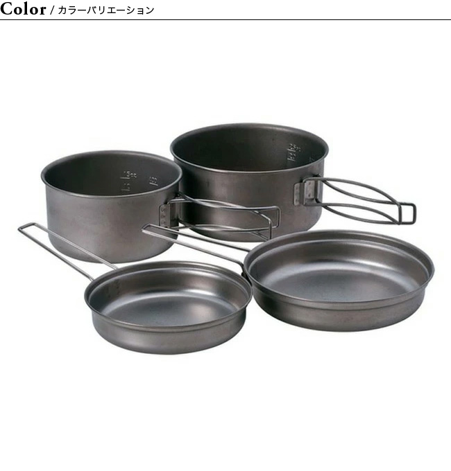 チタン製のフライパンと浅型クッカーを2つ備えています。