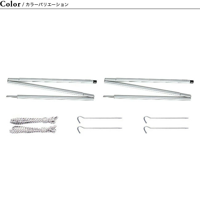 ■セット内容:アルミポール190cm(×2)、自在付二又用ロープ(7m×2)、ジュラルミンペグ(21cm×4)、収納ケース