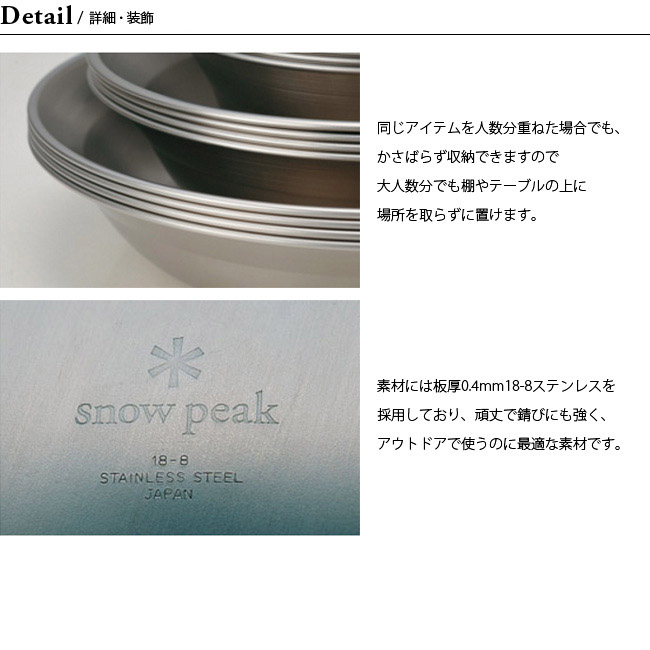 スノーピークが考えるテーブルウェアは、シンプルでスタッキング性に優れたデザインのものです。