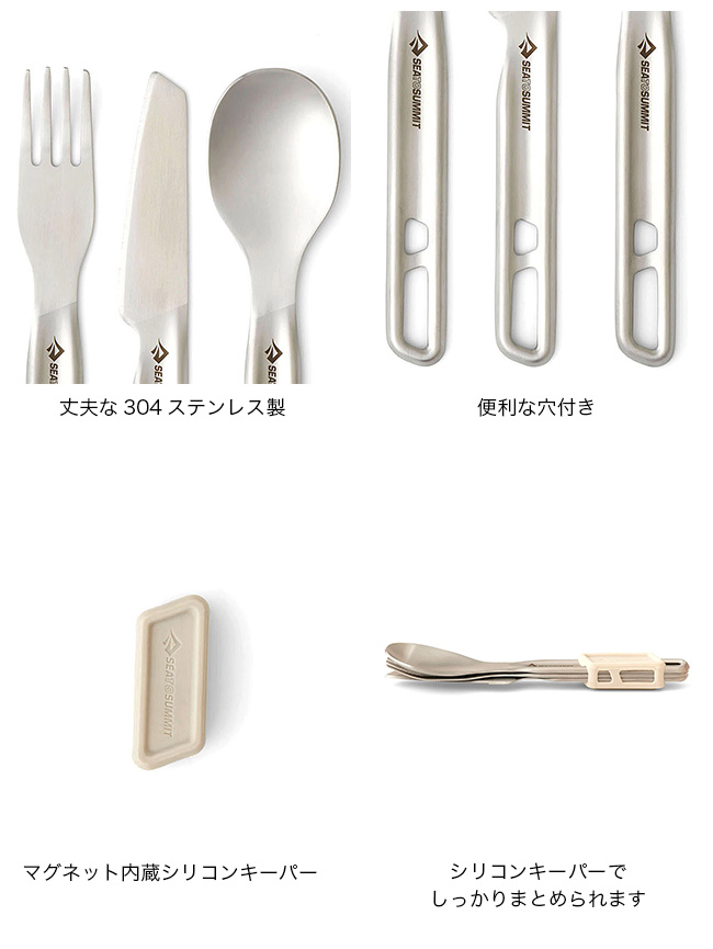 シートゥサミット ディツアーステンレスカトラリー[1P]3点セット SEA TO SUMMIT ST84410 スプーン フォーク ナイフ カトラリー バーベキュー アウトドア キャンプ