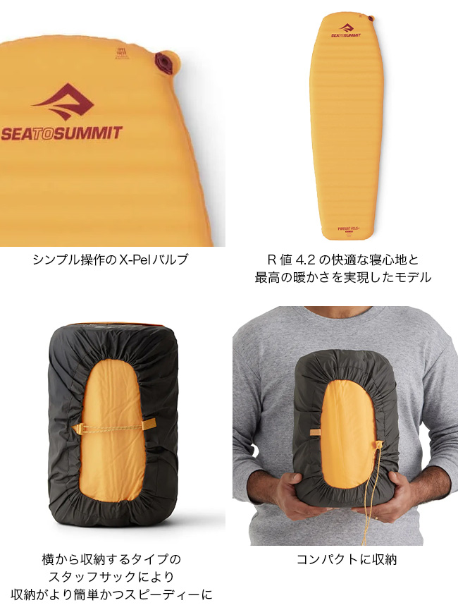シートゥサミット パシュートプラスS.I.マット ラージ SEA TO SUMMIT Pursuit Plus Self-Inflating Sleeping Mat Large ST81066 エアマット テント泊 寝具 災害 防災 車中泊 登山 キャンプ アウトドア