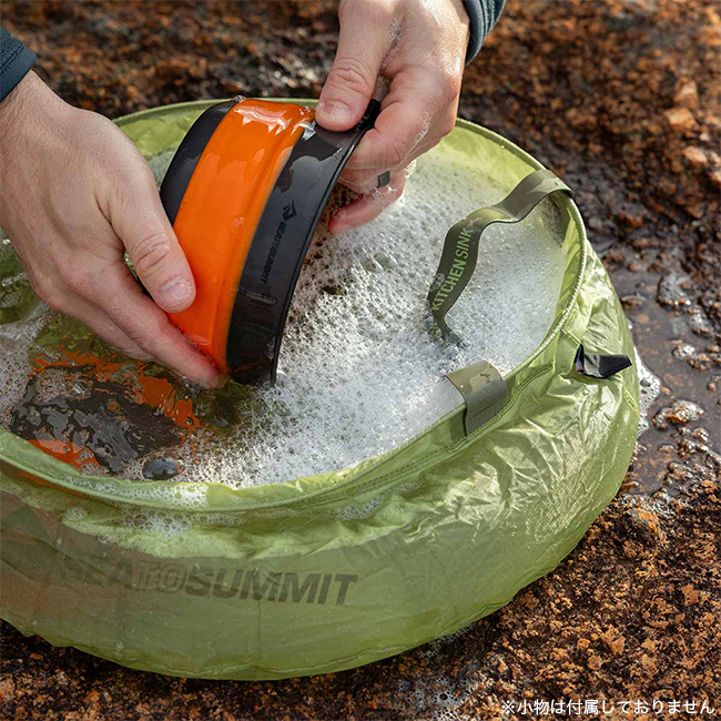 わずか約55gの軽量設計ながら、使用時にはしっかりと機能するキッチンシンク。収納時はマイクロサイズのポーチに収まり、持ち運びもスムーズです。