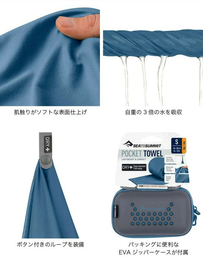 シートゥサミット ポケットタオル S SEA TO SUMMIT Pocket Towel S タオル 速乾 吸収 コンパクト キャンプ アウトドア フェス