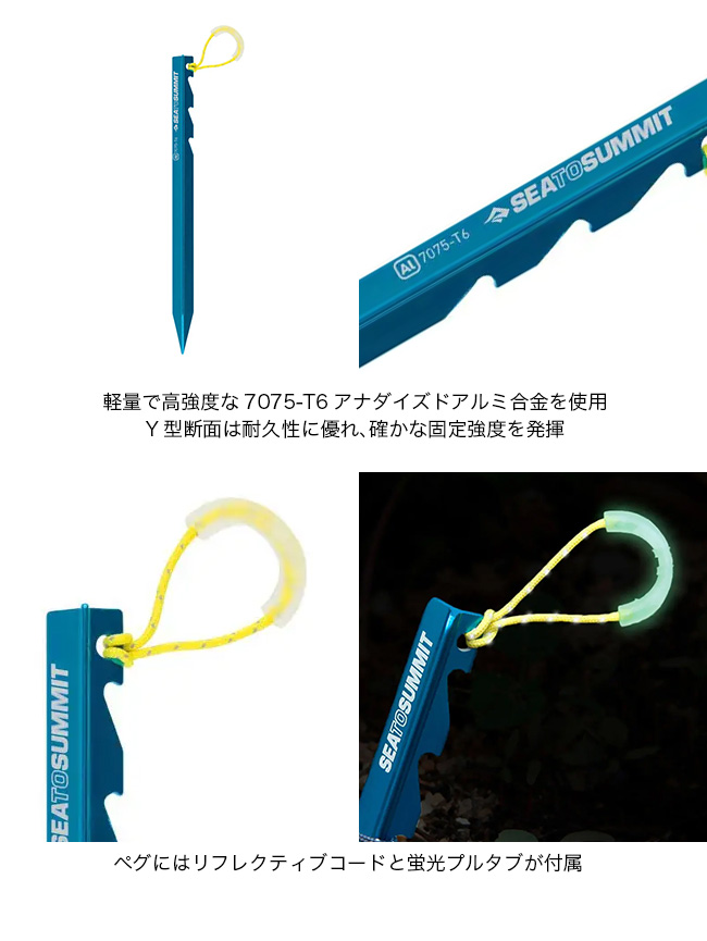 シートゥサミット グラウンドコントロールテントペグ 8本セット SEA TO SUMMIT ST82019001 テント ギア 小物 軽量 高強度 Y型 おしゃれ キャンプ アウトドア