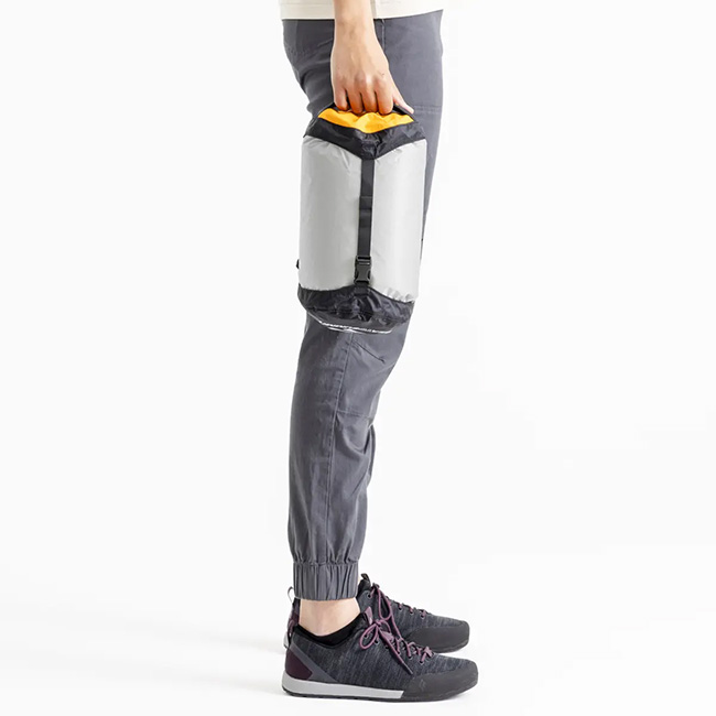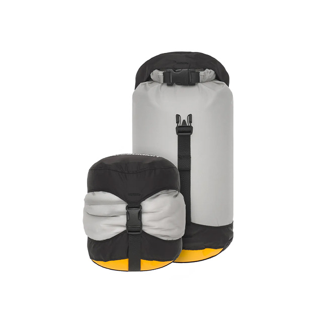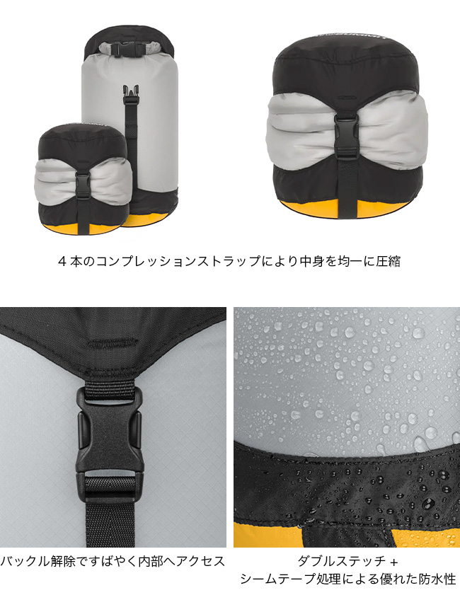 コンプレッションドライサックをベースにして、本体生地に30Dウルトラシルナイロンを使用し、40%も軽量化したモデル。ボトムに使用されている防水透湿素材eVentファブリックは、空気は出しても水は入れない構造。