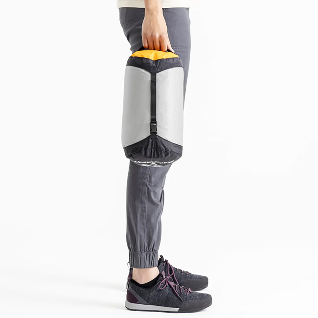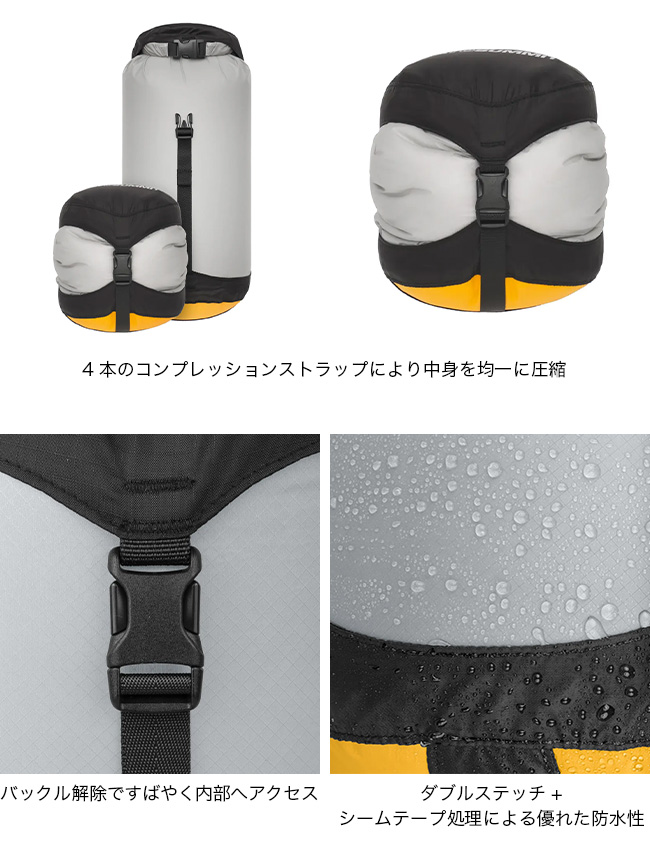 コンプレッションドライサックをベースにして、本体生地に30Dウルトラシルナイロンを使用し、40%も軽量化したモデル。ボトムに使用されている防水透湿素材eVentファブリックは、空気は出しても水は入れない構造。