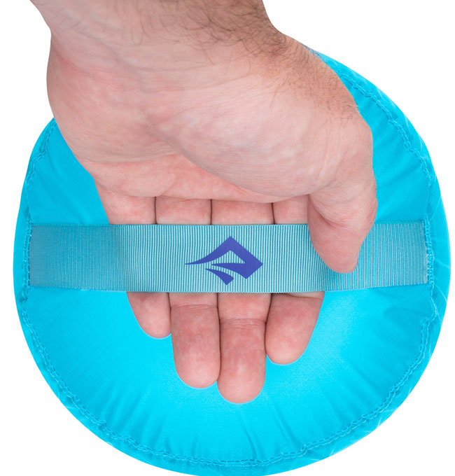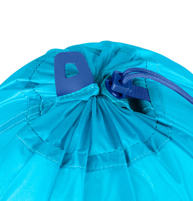 摩擦の少ない生地なのでバックパックの狭いスペースにも押し込みやすく、底部にはグラブハンドルが設けられ、運搬やバックパックへの出し入れに便利。