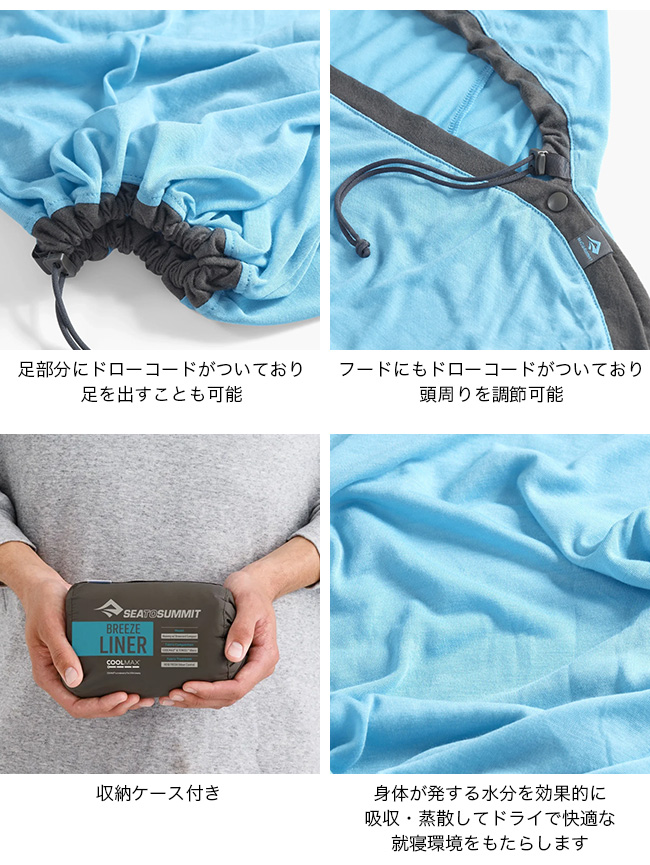 シートゥサミット ブリーズライナー マミーウィズドローコード スタンダード SEA TO SUMMIT BREEZE LINER ST81481 クールマックス インナー ドライ 車中泊 コンパクト ミイラ アウトドア キャンプ