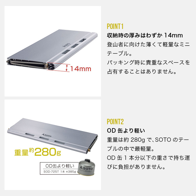 ソト フィールドカイト SOTO ST-632 テーブル 折りたたみ 折り畳み コンパクト 軽量 ミニテーブル 登山 ハイキング ツーリング バイクパッキング バックパック キャンプ アウトドア フェス